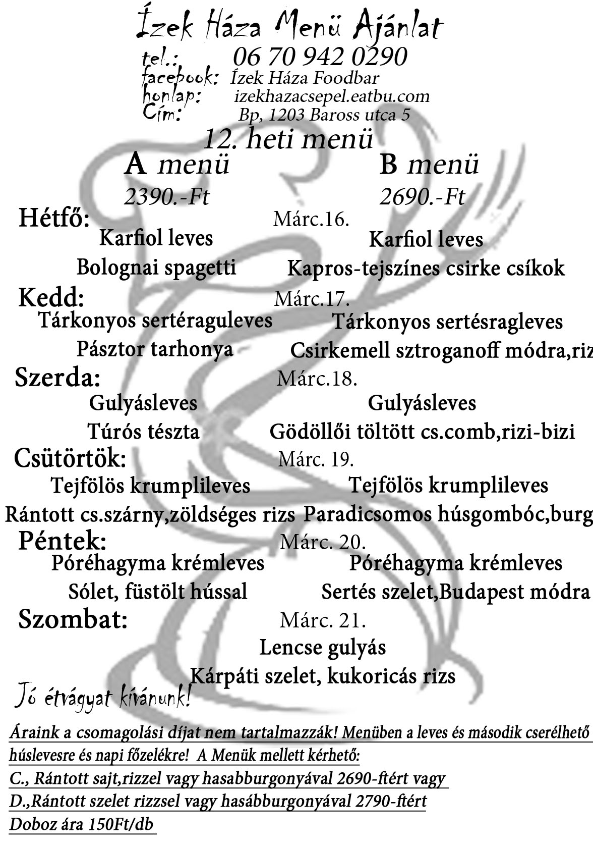 Házias ételek, ételbár, menü, frissen sültek,házhozszállítás,nyári tábor, hamburger, disznóságok , koktél, limonádé, long drink, terasz,Légkondicionált helyiség,üdítő,kávé,rendezvény,szendvics,hidegtál,szépkártya,finom ételek, Pesterzsébet